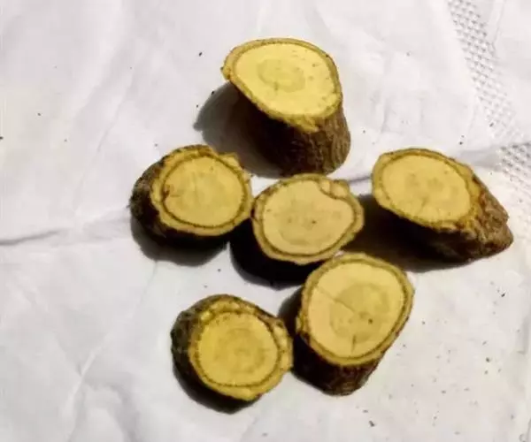 多年生草本,根与根状茎粗状,直径1-3厘米,外皮褐色,里面淡黄色。具甜味。