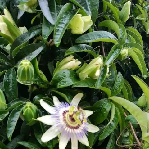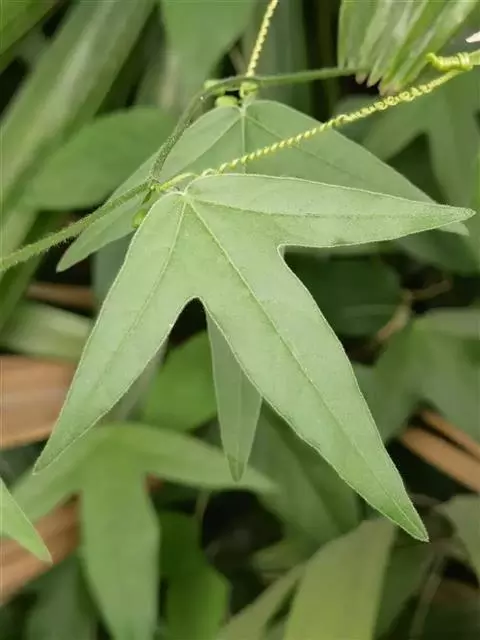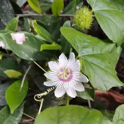 西番莲西番莲科西番莲属多年生常绿攀缘木质藤本植物。茎是圆柱形且有棱角,没有毛;叶子像纸一样薄,…