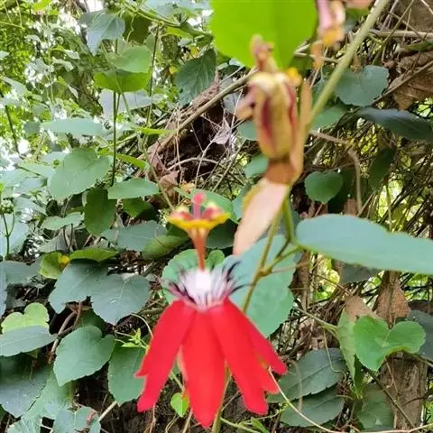 红花西番莲 是西番莲科、西番莲属多年生草质藤本,茎圆形,具卷须,长6-8米。叶互生,长圆形至长卵形,…