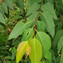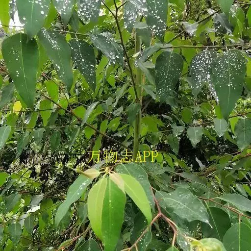 密荫大乔木,高20米;树皮宿存,深褐色,厚2厘米,稍软松,有不规则斜裂沟;嫩枝有棱。幼态叶对生,叶片厚革质,卵形,长11厘米,宽达7厘米,有柄;成熟叶卵状披针形,厚革质,不等侧,长8-17厘米,宽3-7厘米,侧脉多而明显,以80度开角缓斜走向边缘,两面均有腺点,边脉离边缘1-1.5毫米;叶柄长1.5-2.5厘米。