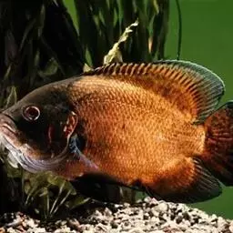 地图鱼形似罗非鱼,但身体更宽阔钝圆,头大、嘴大,背鳍基部很长,自胸鳍上方背部直达尾鳍基部,鳍条前部是锯齿状短硬棘,后部软鳍条较长,与臀鳍成对称状。腹鳍胸位,鳍端尖条形,尾鳍后缘圆形。鱼体的基色为黑色和黄、白色,上有不规则的高粱红斑点,间杂红色条纹斑块,颇似一幅地图,故得名地图鱼。尾鳍基部有镶金边的红色圆环,闪闪发光,酷似夏夜的星星,故又名尾星鱼。地图鱼有许多变异种。如红版地图、白、黄花、红眼地图鱼等。