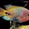 地图鱼 12 个月龄左右即可达到性成熟,但作为繁殖用的亲鱼以选择 1.5 龄最为理想。体长 30厘米以上、体重500克以上的个体为好。要求形态标准、体表光滑、鳞片、鳍条完整、色泽鲜艳、图案完整、体质健壮、无病无伤、性腺发育良好,雄鱼色泽鲜艳,雌鱼腹部膨大。