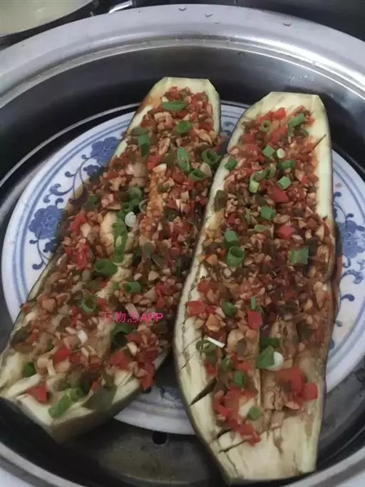 2、也可以先用蒸锅将茄子蒸稍微软一点,吃的时候刷上油用刀划开铺上肉馅烤一下;