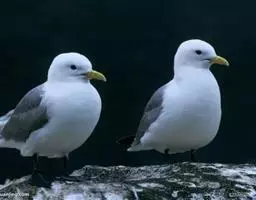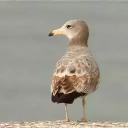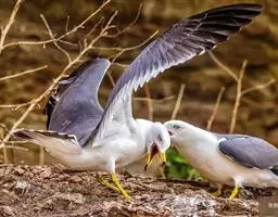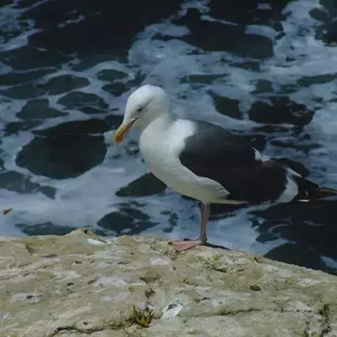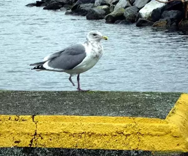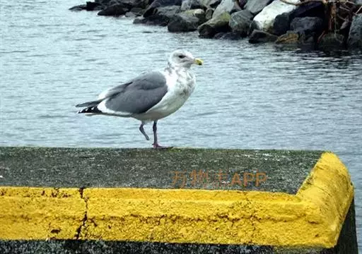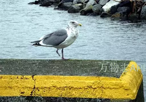灰翅鸥(学名:Larus glaucescens),夏羽头、颈、腰、尾白色;肩、背和翅上覆羽鸽灰色。冬羽和夏羽相似,但头和颈具淡褐色纵纹,有时扩展至上胸。嘴黄色,下嘴先端具红斑;幼鸟嘴黑色。脚粉红色。栖息于海岸:悬岩,海滨沙滩于近海海岛上。常成对或成小群活动。主要食鱼、虾、甲壳类、软体动物等水生脊椎和无脊椎动物。通常营巢于人迹罕至和难于到达的海岸悬岩上,也营巢于平坦的海滨沙滩。巢主要由水生植物和枯草构成,内垫有羽毛。