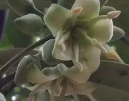 聚伞花序腋生,头状,近于无轴或有长约1.5厘米的花序 轴;小苞片狭披针形,长约4毫米;萼筒状,5裂,长3-4毫米,裂片三角形,远比萼筒长; 花瓣5片,淡黄色,匙形,顶端截形,比萼略长;雄蕊5枚,花丝合生成筒状,包围着雌蕊;子房无柄,被短柔毛,花柱偏生,柱头流苏状。