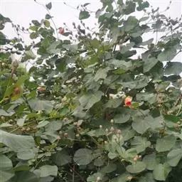 苘麻锦葵科苘麻属一年生亚灌木草本植物。茎秆较高,上面有柔毛;叶子较大且有纹路,浅绿色,边缘不平整,…