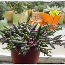 紫玄月是菊科厚敦菊属多年生肉质草本植物。蔓长30-60厘米;茎紫色;叶对生或互生茎上肉质,…