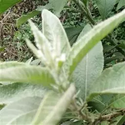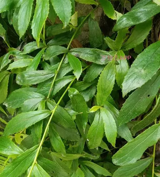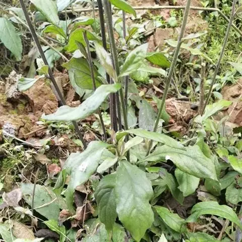 茎表面浅棕色,近无毛。叶多皱缩破碎。完整叶片椭圆形或卵状椭圆形,长7-10cm,宽2.5-4cm,顶端尖,基部楔形或圆形,浅棕褐色,上面粗糙,无毛,下面被微毛或近无毛,边缘具小齿,网脉极明显,叶柄长2-5mm,被柔毛。有的残留有头状花序。气微,味微苦。