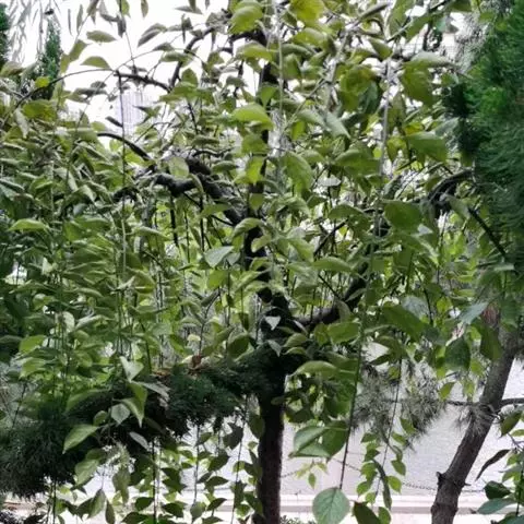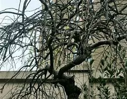 树皮暗灰色,粗糙,不规则纵裂。幼树枝条直立,且被白色毛;老树枝条先端下垂,有时木栓质发达成为瘤状。…