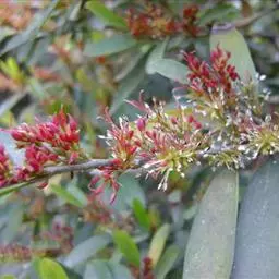 小叶蚊母树(学名:Distylium buxifolium (Hance) Merr.)是金缕梅科蚊母树属植物。常绿灌木高1-2米;嫩枝秃净或略有柔毛,纤细,节间长1-2.5厘米;老枝无毛;芽体有褐色柔毛。叶薄革质,倒披针形或矩圆状倒披针形。雌花或两性花的穗状花序腋生,长1-3厘米,花序轴有毛。蒴果卵圆形,先端尖锐,宿存花柱长1-2毫米。种子褐色,长4-5毫米,发亮。