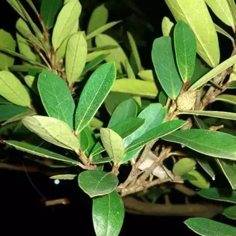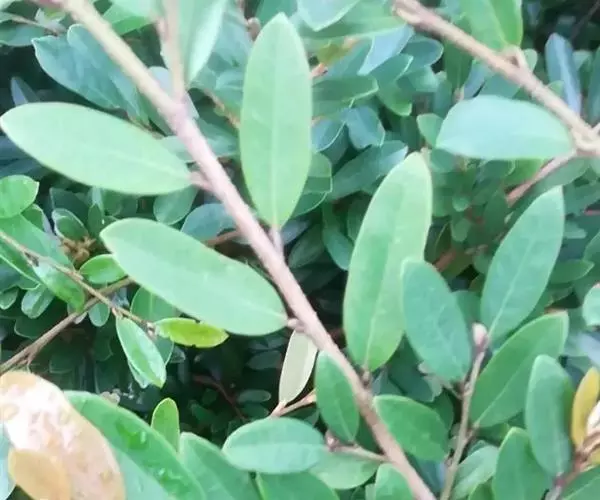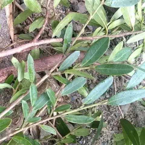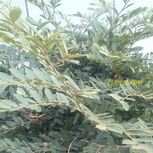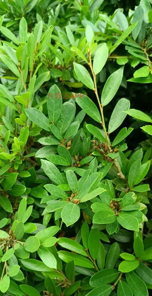 常绿灌木高1-2米;嫩枝秃净或略有柔毛,纤细,节间长1-2.5厘米;老枝无毛,有皮孔,干后灰褐色;芽体有褐色柔毛。叶薄革质,倒披针形或矩圆状倒披针形,长3-5厘米,宽1-1.5厘米,先端锐尖,基部狭窄下延;上面绿色,干后暗晦无光泽,下面秃净无毛,干后稍带褐色;侧脉4-6对,在上面不明显,在下面略突起,网脉在两面均不显著;边缘无锯齿,仅在最尖端有由中肋突出的小尖突;叶柄极短,长不到1毫米,无毛;托叶短小,早落。