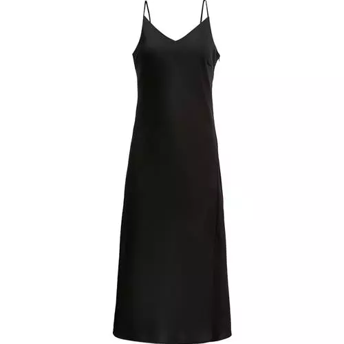 2、如果要修身,挑选一款高腰款式设计,会显得身材更加高挑纤瘦。如果气场不够强大,请不要用你的紧身T搭配长裙!你可以试试无袖的V字领收腰连衣裙。当然,挑选黑色,会令你更加高贵。