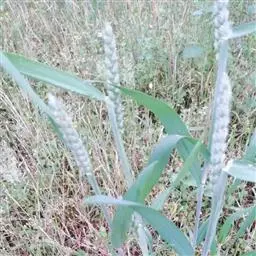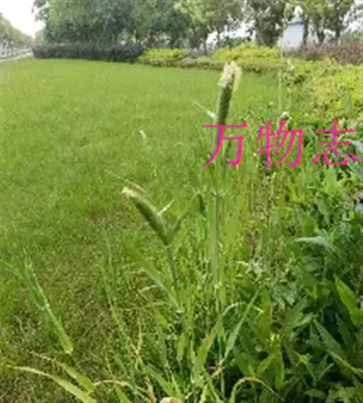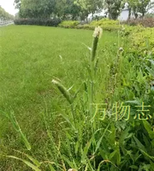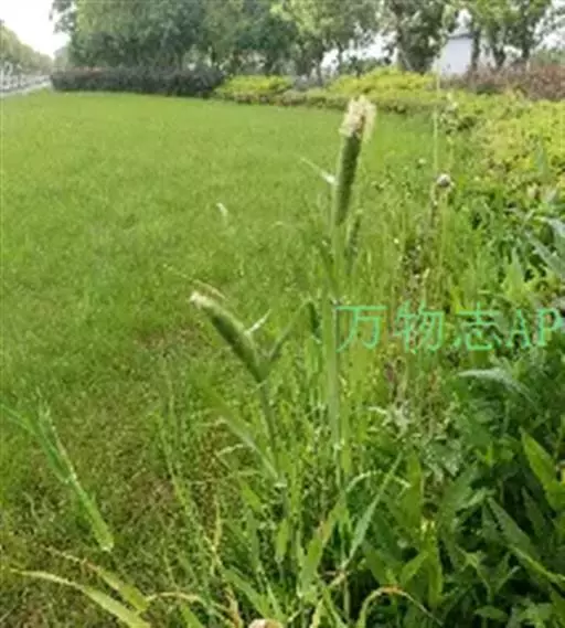 圆锥花序长圆状圆柱形,长2.5-7厘米,宽6-10毫米,灰绿色或成熟后黑色;小穗长4-5毫米,卵形;颖基部约1/4互相连合,顶端尖,稍向外张开,脊上具纤毛,两侧无毛或疏生短毛;外稃较颖短,先端钝,具微毛,芒近于光滑,约自稃体中部伸出,长1-5毫米,隐藏或稍露出颖外;雄蕊3,花药黄色,长2.5-3毫米。花果期7-9月。
