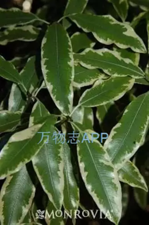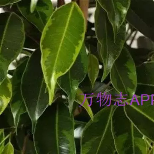 花叶垂榕为常绿灌木,株高l米至2米,分枝较多,有下垂的枝条,叶互生,阔椭圆形,革质光亮,全缘,淡绿色,叶脉及叶缘具不规则的黄色斑块。叶柄长,托叶披针形。全株具乳汁。
