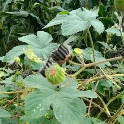 苘麻锦葵科苘麻属一年生亚灌木草本植物。茎秆较高,上面有柔毛;叶子较大且有纹路,浅绿色,边缘不平整,…