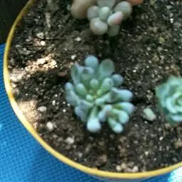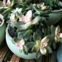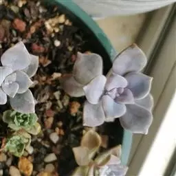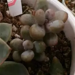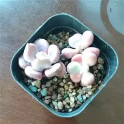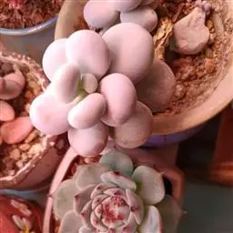 蓝豆(学名:Graptopetalum pachyphyllum Rose)是景天科、风车草属的多年生植物,多肉植物。植株叶片覆白粉,呈淡蓝色,在温差大、日照充足的环境下叶泛橙色或粉紫色。花五瓣,底色白,有红色斑纹。墨西哥多地有分布,广泛栽培于世界各地。