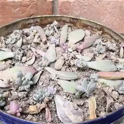 种植养护: 1.修根 景天科植物到手后,均需要修根,一般而言,须根全部除去,留下主根即可。其中石莲花是比较强健的品种,不修根也没有关系。 2.晾干 一般晾干2-5天即可种植。当然了,有经验的花友知道,最安全的办法是一直将植物放置在阴凉通风处,不需要种植,大概2-3周之后,景天植物会在空气中自然萌发出根系,这时候种植下去,成活率是接近百分之百的。期间,不用担心植物干渴而死,即使植物缩水厉害,还是可以恢复的。