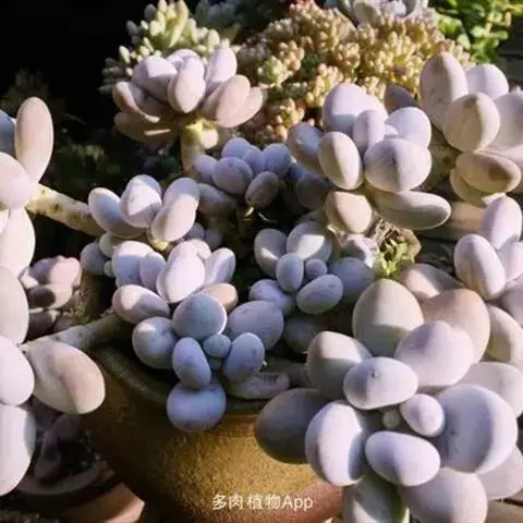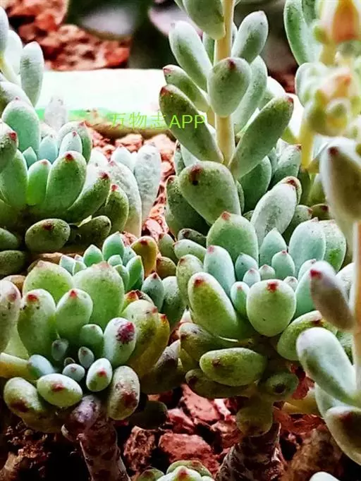 蓝豆是景天科、风车草属的多年生植物,多肉植物。植株叶片覆白粉,呈淡蓝色,…