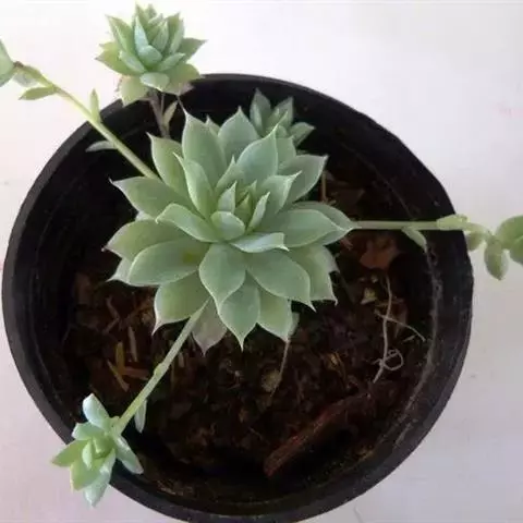 景天科风车草属的多肉植物,原产于墨西哥。株形和风车草属胧月极为相似。花瓣被蜡,叶排成延长的莲座状被…