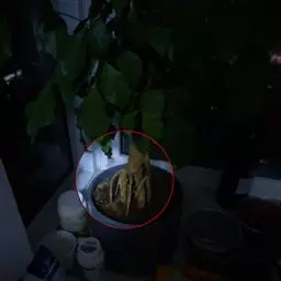 块根肉质,粗大,坚实,长圆球形,顶部不缩小,外皮及根肉均为黄棕色,下面生多数须根;基生叶及下部茎生叶长圆状卵形,长20-30厘米,有粗齿,稍具粉霜。