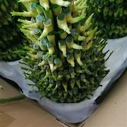 榨菜(通称) 菱角菜、羊角儿菜(四川)下部叶的叶柄基部肉质,膨大,形成高低不平的拳状;基生叶倒卵形或长圆形,长40-80厘米,平坦或皱缩,基部大头羽状深裂,成为具沟的粗叶柄。