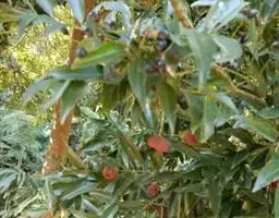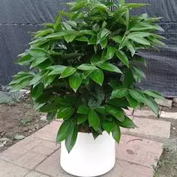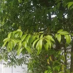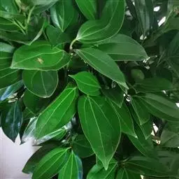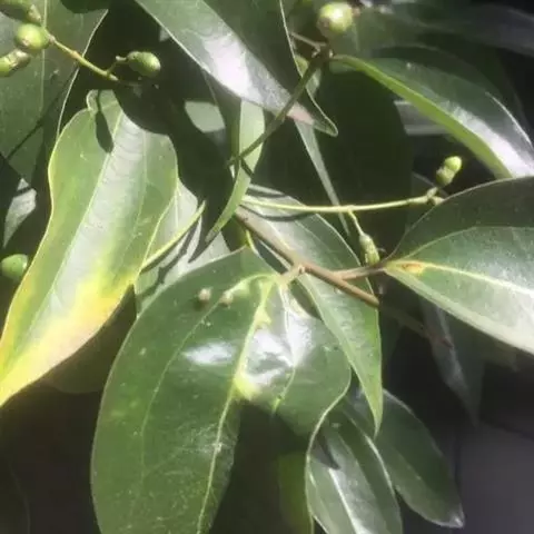 3、细叶香桂,常绿高大乔木。树皮灰色,小枝密生绢状毛。叶在新枝对生,在老枝互生,革质,卵状椭圆形至披针形,长4-14cm,宽1-6cm,先端长渐尖,基部楔形,全缘,上面绿色,有光泽,下面密生绢状短柔毛,具离基3出脉,在背面显着隆起。圆锥花序腋生;总花梗和花梗密生白色短柔毛;花淡黄色,花被6裂,基部筒状;雄蕊、雌蕊与前种相似。浆果椭圆形,基部具宿存萼筒,全缘。花期5-6月。果期6-12月。