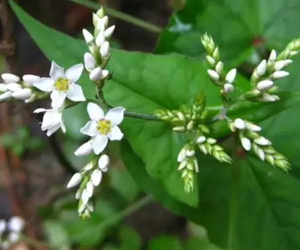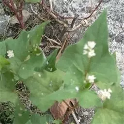 金荞麦(学名:Fagopyrum dibotrys (D. Don) Hara)是蓼科,蓼属多年生草本植物。根状茎木质化,茎直立,高可达100厘米,叶片三角形,顶端渐尖,基部近戟形,边缘全缘,托叶鞘筒状,膜质,花序伞房状,顶生或腋生;苞片卵状披针形,边缘膜质,花梗中部具关节,与苞片近等长;花白色,花被片长椭圆形,瘦果宽卵形,7-9月开花,8-10月结果。