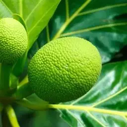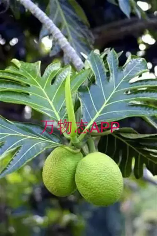 面包树是一种木本粮食植物,果实富含淀粉,烧烤后可食用。烤制过的面包果,味如面包,松软可口,酸中有甜,常被用作口粮。可以烤食。