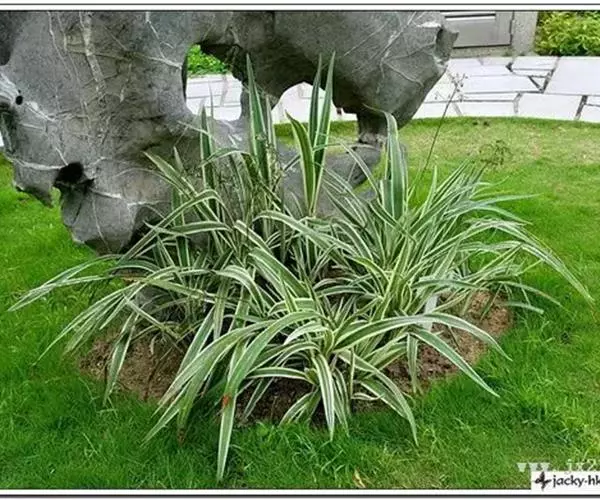 银边山菅兰为多年生草本,叶丛生长带状,边缘有淡黄色边,圆锥状花序生自基部,直立,花黄色。观叶植物。