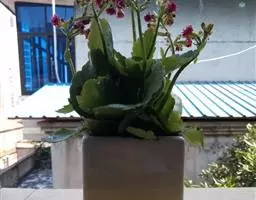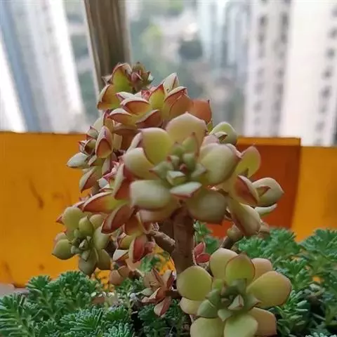 充分光照情况下,狂野男爵的叶片会变红,尤其是瘤状物。花期夏季,圆锥花序,花梗长20厘米左右,花,钟型,5瓣,五角星形,外瓣橘红色,内瓣、花蕊黄色,和大多数拟石莲花属多肉开的花一样。