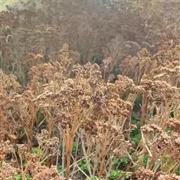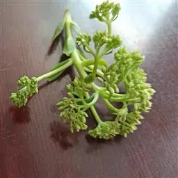 聚伞圆锥花序顶生 ,高约15厘米,花五基数,小花淡黄色 或白色,密集多数,苞片长卵形或狭三角形,长4.5毫米,绿色;花几乎无梗,萼片三角形,约3毫米, 萼片基部合生,较花瓣为短;基部稍合生,披针形,直立; 花瓣椭圆形,离生或线形,长4-5毫米;雄蕊长于花瓣,花药红色。 鳞片小,长圆形,先端截形;子房上位,心皮有柄,基部渐狭,直立,花柱细;胚珠多数,成侧膜胎座。