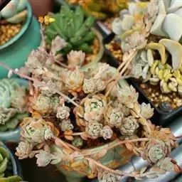 浇水:子持莲华浇水一般是干透才浇透,不干不浇水。炎热的夏季一般每个月4到5次水,不浇透,以维持植株的正常生长,夏季浇水太多容易腐烂。冬天温度低于5度就要逐渐断水,3度以下保持盆土干燥,尽量保持不低于零下20度。
