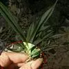 叶基生呈莲座状,平卧或斜展;叶片硬纸质,线形、狭披针形或狭匙状线形,长3-8厘米,宽1.5-8毫米,先端渐尖,边缘全缘,基部渐狭并下延,叶柄不明显,脉3条,基部扩大成鞘状。