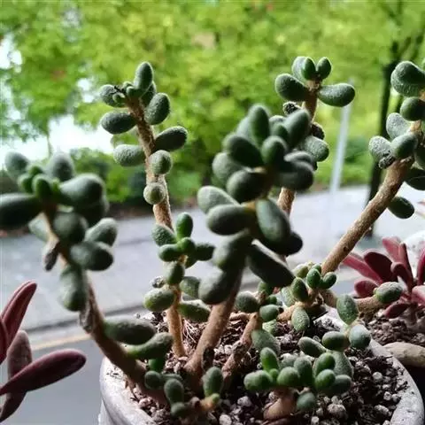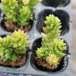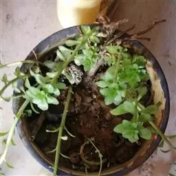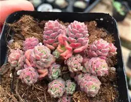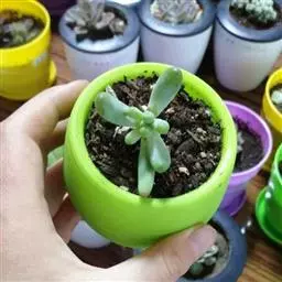 这小东西在冷凉季节生长很快,人手时干瘪得毫无生气,上盆后叶片很快就开始饱满。冬季的长势极为”泼辣”,不断地从叶片之间爆出侧芽。多叶魔南的根系比较细弱,而且也偏浅,用盆最好别太深,7厘米左右的高度足矣。另外基质的颗粒直径也一定要够小、够疏松透气,生长层可以添加大1一2毫米直径的麦饭石,方便根系攀附。