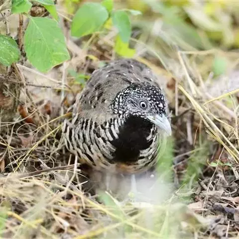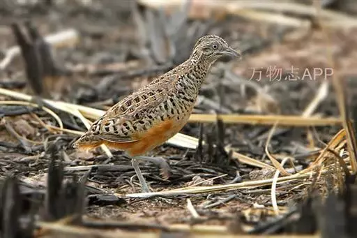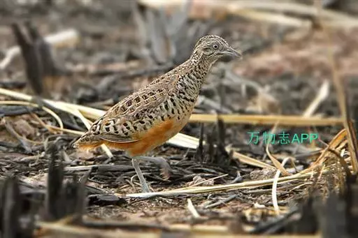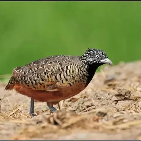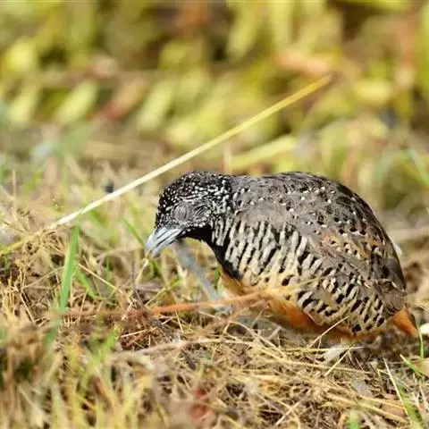 棕三趾鹑(学名:Turnix suscitator):属鹤形目三趾鹑科,体重54-70克;体长143-173毫米。体形和羽色与林三趾鹑和黄脚三趾鹑相似,雄鸟头上黑色,杂有褐色羽毛及白色斑点,背至尾羽褐色杂有灰褐色羽毛,喉、颈侧乳白色,杂有黑色细斑,上胸、胸侧淡黄褐色有黑色横斑。雌鸟红褐色较浓,脸、喉、前颈黑色有乳黄色斑点,胸侧橙褐色有黑色横斑。虹膜沙白色或灰黄色;嘴蓝灰色或灰褐色,尖端色淡;跗蹠和趾灰绿色,爪淡黄色。