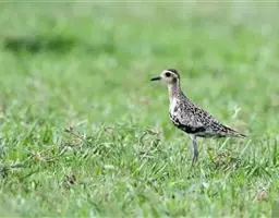 雄性成鸟:与雌鸟相似,但体形稍小。颏、喉不是黑色而是白色,胸部皮黄色,具宽阔的黑色横斑。