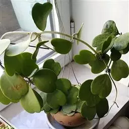 心叶球兰是萝摩科、球兰属亚灌木。茎枝攀爬达可2米,黄灰色。叶柄粗壮、饱满,叶片呈卵至长卵形,…