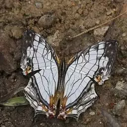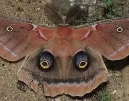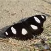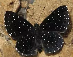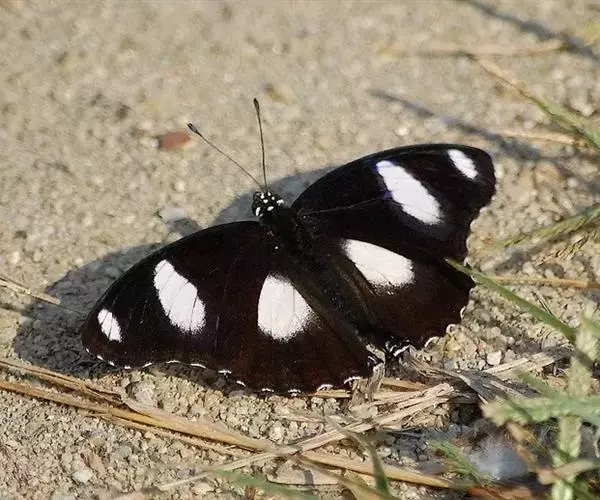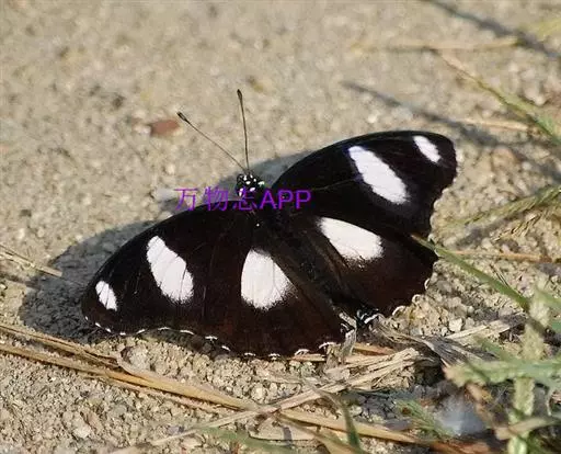 它的雌蝶以幕拟金斑蝶而闻名,雄蝶翅黑褐色,前翅中室外有1个长椭圆形白斑,顶角附近有1个小形白斑;后翅中域有1个大形白斑;前后翅的白都斑有紫色光泽。雌蝶翅橙黄色,顶角有1个较小的白斑,中室外侧有1列宽的白色斜带;后翅外缘黑褐色,前缘有1个黑斑。两翅外缘均有两列成对的小白点。
