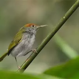 黑喉缝叶莺:体长11.5厘米,是一种小型的顶冠棕色、腹部白色的莺。尾甚长而常上翘,臀黄色,…