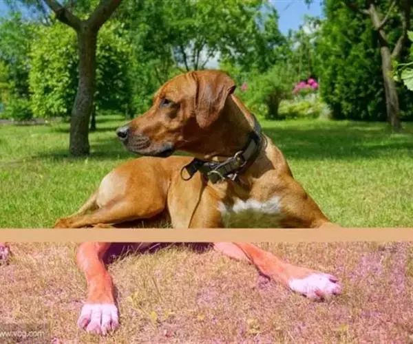 皮毛:是密实的短毛,滑顺,有光泽,毛色有淡黄褐色或红色。身体硕状,胸部厚实,肌肉结实。四肢强而有力,肌肉发达。尾长,尖端细,尾根强壮,行动时尾根向下 。