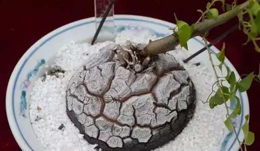 龟甲龙的价格很高, 其种子羽状翼很宽, 棕黑色, 与丝瓜种子类似, 应注意的是墨西哥龟甲龙在春季播种, 南非龟甲龙在秋季播种, 种植方法一样。花盆要用透气排水好的盆, 瓦盆就行。培养土应用通透性良好且不含过多腐殖质, 否则易烂根或烧根。可以用2份赤玉土、2份峨眉山黑仙土、1份泥炭土来配制, 土壤配制好后, 用0.01%的多菌灵溶液搅拌土壤, 搅拌均匀的土壤以首播土壤成团、松手土团即散为标准, 然后, 装入盆内待用。播种前首先要将种子的纸质翅部分去除干净, 以避免种子发芽的过程中因纸质翅部分过分潮湿造成种子霉烂。处理好的种子需要用低浓度的高锰酸钾溶液浸泡半天, 然后将浸泡过的种子放在准备好的培养土上, 将种子深色部分向下浅插在格子中, 保证浅色部分在上且直立, 按照株行距都是1 cm的要求, 覆盖土壤2~3 mm, 盆面加盖1层玻璃或透光好的塑料膜, 保持盆土的湿度。龟甲龙的出芽率很高, 数日后会有小苗陆续破土出苗。注意:幼苗在10℃以下生长会停滞, 5℃以下会冻伤。在生长期, 要光照充足, 龟甲龙还有个特点就是, 如果把它的块茎整体埋在土里面的话, 那么块茎的生长膨大就会更快一些。小苗种植两年后就可以分盆单按照日常养护了。