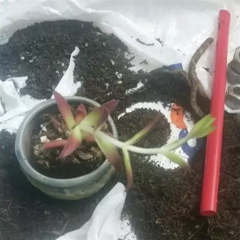 掰取植株中下部成熟健康的筒叶,基部略斜插入基质中,大部分 裸露在外面。这样光合作用面积大,有利于快速生根并能防止或减少插叶腐烂,提高成活率。叶插基质可选用沸水消毒后的粗砂。可以插在花盆的的盆边,充分利用其它花卉的叶片,来给最初的筒叶遮荫,利用“花搭光”创造一个自然的散射光环境,减少插叶的水分散失。同时,务必保持液面高出盆土表面,干燥诱导不出来根。