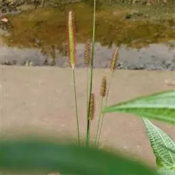 竹节草,拉丁文名:Chrysopogon aciculatus (Retz.) Trin.禾本科、金须茅属 多年生,具根茎和匍匐茎。秆的基部常膝曲,叶鞘无毛或仅鞘口疏生柔毛,多聚集跨覆状生于匍匐茎和秆的基部,秆生者稀疏且短于节间;叶舌短小,基部圆形,先端钝,两面无毛或基部疏生柔毛,边缘具小刺毛而粗糙,秆生叶短小。圆锥花序直立,长圆形,紫褐色,初时与穗轴顶端愈合,基盘顶端被锈色柔毛;颖革质,约与小穗等长;先端全缘,内稃缺如或微小;鳞被膜质,顶端截形;颖纸质,花果期6-10月。