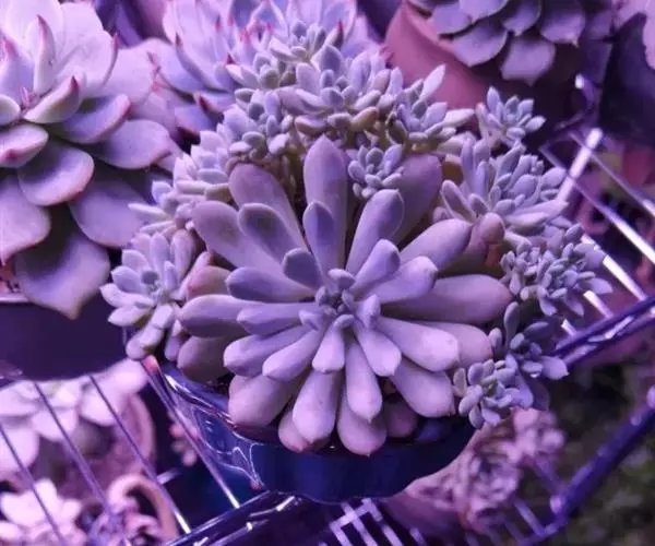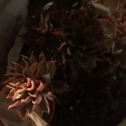 光照越充足、昼夜温差越大,叶片色彩越鲜艳。在温度允许的情况下,最好放到室外养护,保证充足的光照。光照不足或土壤水分过多时徒长,全株呈浅绿色或深绿色,叶片稀疏间距伸长,加速向上生长,严重影响观赏性,甚至可能因植株的光合作用受阻而死亡。