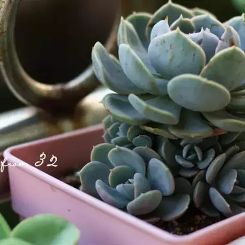 大和锦是景天科拟石莲花属的多肉植物。肉质叶排成紧密的莲座状,广卵形至散三角卵形,背面突起呈龙骨状,…