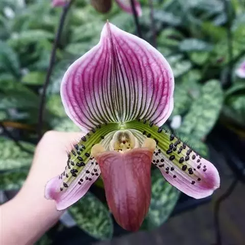 虎斑兜兰兰科,兜兰属地生或半附生植物。叶基生;数枚至多枚,叶片带形、革质。花葶从叶丛中长出,花苞片…