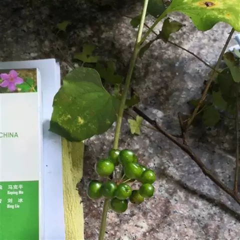 菝葜,菝葜科菝葜属 多年生藤本落叶攀附植物,茎干较粗,嫩白色,呈圆柱形,表面带有小刺;叶子较大,…