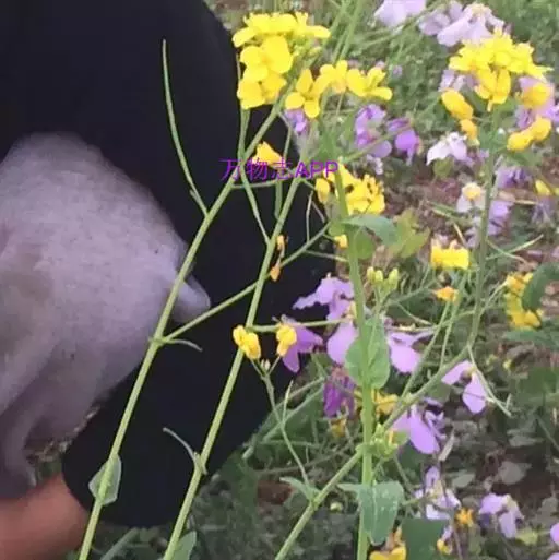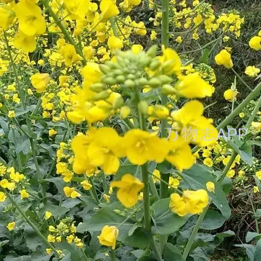 又名油菜。它的籽可以榨油。九、十月间插种,长出来的叶子形状颜色有点像白菜。