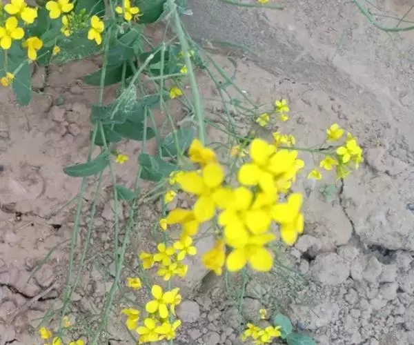 油菜开黄色的有四瓣的小花,像芥花。结荚收籽,它的籽也像芥籽,呈灰赤色。