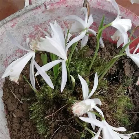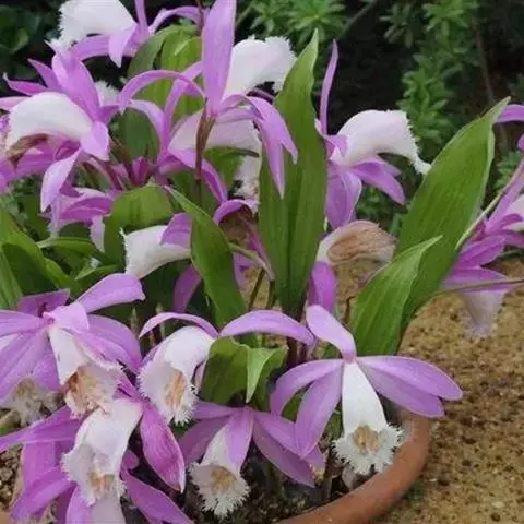 盆栽基质可以有许多种配比,比较常用的有:栽种附生兰花用的树皮块(5毫米以下,筛去尘土)6份,粗颗粒的珍珠岩1份,切成长5-6毫米的苔藓1份和经过粉碎的泥炭1份。盆栽时盆体下部2/3填充上述较粗的颗粒,稍细些的填在上面。用细小的树皮块和较短的苔藓填充在新生假鳞茎的周围。腐殖质和纤维含量比较多的泥炭土、腐叶土再添加1/2的树皮块(直径5毫米以下)或添加一些粗颗粒的珍珠岩配制成盆栽基质也可以用作独蒜兰的盆栽。另外,苔薛加碎砖块、木炭块(直径3-5毫米)各1/2配制成的盆栽基质也比较好。单纯用苔藓盆栽独蒜兰,也取得十分满意的结果。在上述盆栽基质中添加少量粗砂,对稳定独蒜兰植株在盆中栽植有好处,不会因栽培基质太轻和疏松而东倒西歪。当然砂粒或砖碎块过多也会使基质过于密实,影响根系的生长发育。在盆栽基质中少量添加腐烂的山毛律或株树的叶子,或加一些干牛粪对栽培好独蒜兰是有益处的。